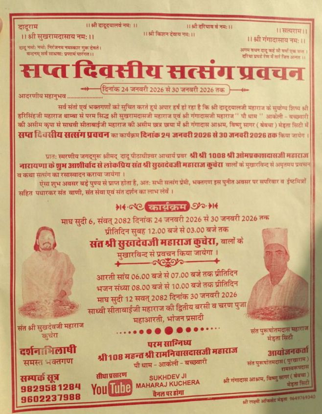ऐतिहासिक धार्मिक आयोजन: मीरा की जन्मस्थली मेड़ता सिटी में संत प्रभुजी नागर की श्रीमद् भागवत कथा