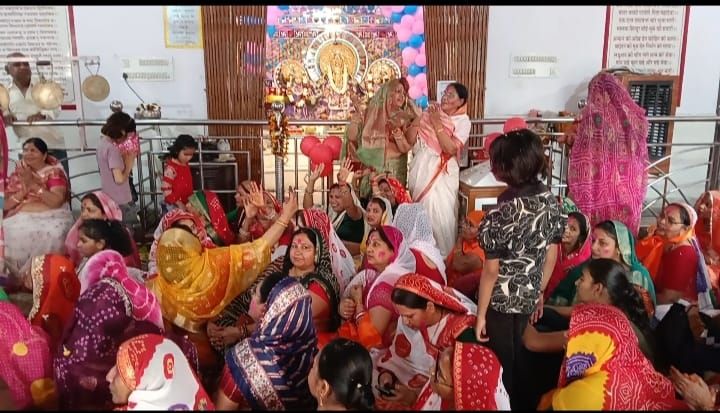 श्री सिद्ध गणेश मंदिर पर हुआ फागोत्सव। रंग-बिरंगे फूलों से विभिन्न धुनों पर महिलाओं ने किया नृत्य।
