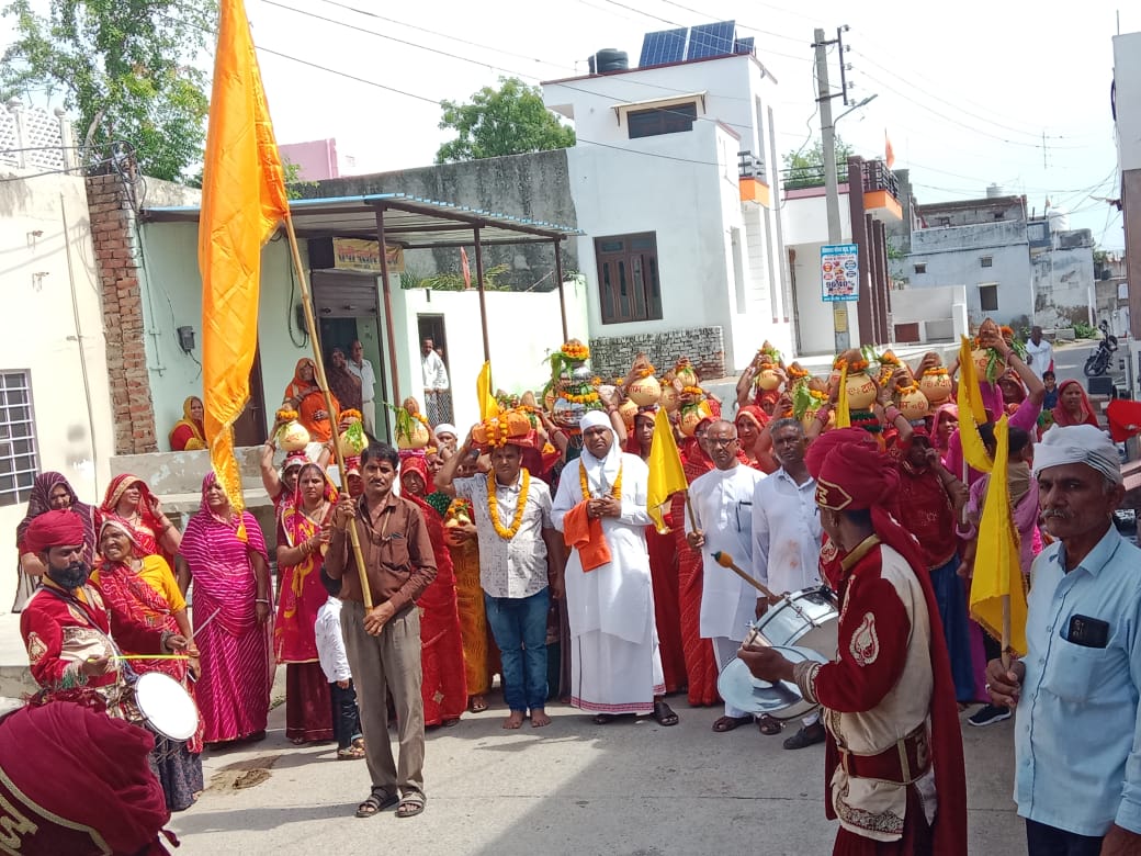 श्रीरामनगर स्थित श्रीदादू आश्रम पर संत राम प्रकाश स्वामी के सानिध्य मे चल रहे चतुर्मास सत्संग ज्ञान यज्ञ एवं पुरुषोत्तम मास में बुद्धवार को व्यासपीठ से संगीताचार्य संत राम प्रकाश स्वामी ने प्रातः श्री बालाजी बगीची मैं पूजा अर्चना के बाद यजमान रामकिशोर सरवन लाल होदकास्या ने श्रीमद् भागवत पोथी सर पर रख कलश यात्रा के साथ कस्बे में भ्रमण करते हुए