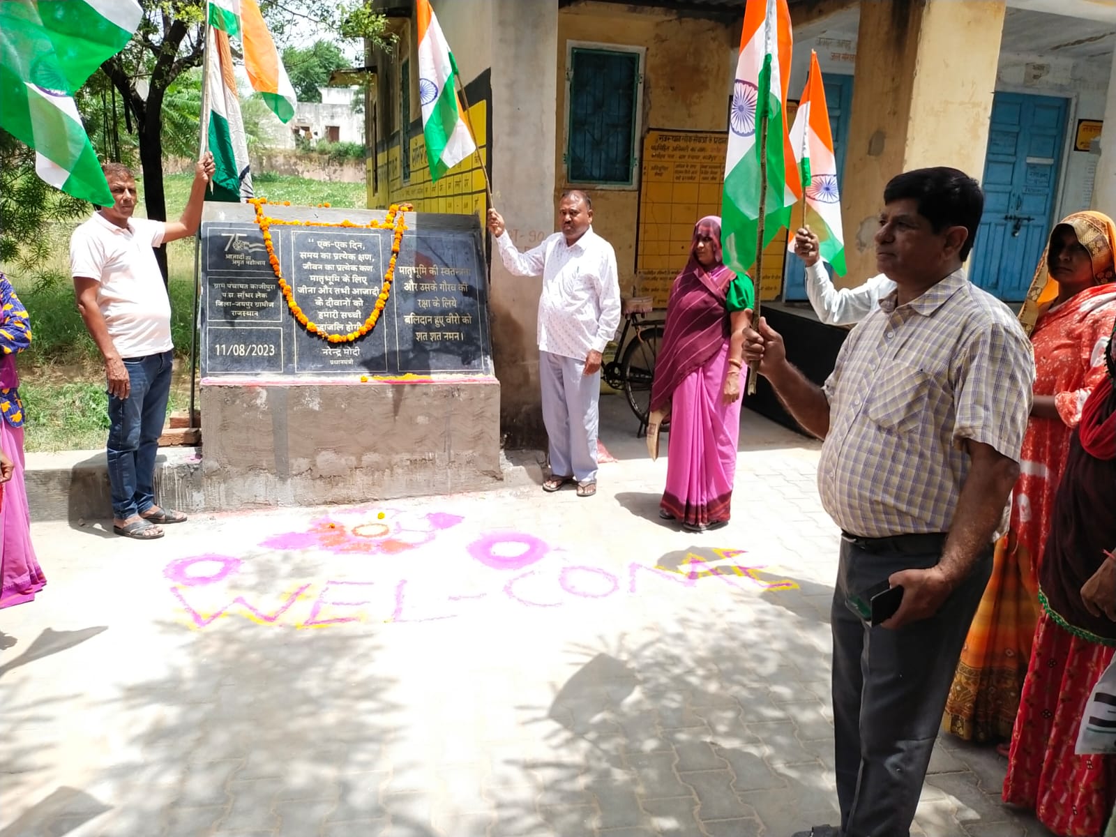 फुलेरा (दामोदर कुमावत) निकटवर्ती ग्राम काजीपुरा पंचायत मुख्यालय परिसर पर “मेरी माटी मेरा देश, कार्यक्रम के तहत ग्राम के जनप्रतिनिधियों, ग्राम वासियों, सेवानिवृत्त पुलिस व सेवा के प्रतिनिधियों द्वारा शपथ ग्रहण कर पंचायत परिसर पर पौधा रोपण किया गया।