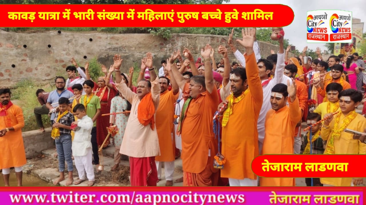 कावड़ यात्रा में पुजारी शिवरतन ओम प्रकाश मुकेश आशीवाल शांतिलाल मथुरिया पार्षद कैलाश कंदोई हंसराज हेमंत मेहता मुकेश गहलोत लक्ष्मी नारायण कच्छावा रामानंद बजाज अशोक जांगिड़ दिनेश बोराणा बबलू नरेंद्र विष्णु इंदर विक्रम भाटी सुशील सेन ओमगौड शशि कुमार राहुल विशाल ऋतिक शर्मा रामविलास नरेंद्र रमेश वैष्णव भरत भोजक नवीन गिर्राज नरेंद्र पारीक बस्तीमल खाबीया लक्ष्मण सोनी कैलाश टॉक दीपू अग्रवाल सहित सैकड़ो महिलाएं पुरुष बालक मौजूद रहे
