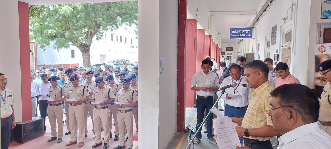 सभी भारतवासियों की भावनात्मक एकता और सद्भावना के लिए कार्य करने एवं हिंसा का सहारा लिये बिना सभी प्रकार के मतभेद बातचीत और संवैधानिक माध्यमों से सुलझाने की शपथ दिलवाई।शपथ ग्रहण में रेलवे अधिकारीगण तथा बड़ी संख्या में रेल कर्मचारी उपस्थित रहे।