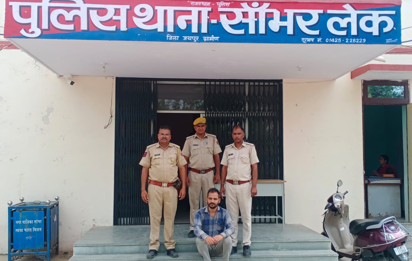 थाना अधिकारी राजेंद्र कुमार यादव ने बताया कि किशन लाल नामा पुत्र मागींलाल नामा निवासी लम्बी गली सांभर ने थाने मे रिपोर्ट दी कि उनका पुत्र प्रभात नामा ने तीन माह पूर्व उनके घर से लगभग 1’50लाख रूपये के सोने चान्दी के जेवर चुरा कर गिरीराज सोनी पुत्र द्वारका प्रसाद सोनी निवासी बडा बाजार सांभर को बेच दिया है ।पुलिस ने मामला दर्ज कर पड़ताल हेड कांस्टेबल रमेश चंद्र को सोपी । पुलिस जांच मे आरोपी द्वारा चोरी का मालखरीदे जाने पर आरोपी को गिरफ्तार किया ।