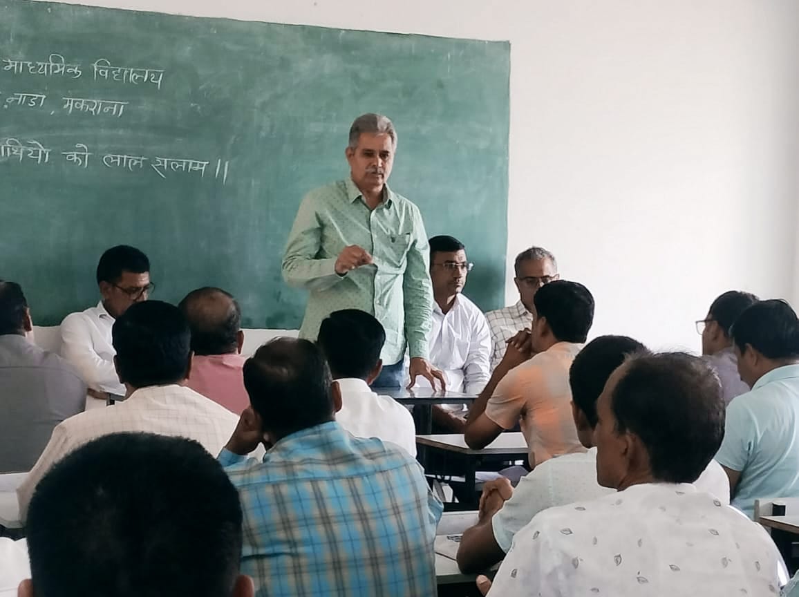 मकराना (मोहम्मद शहजाद)। राजस्थान शिक्षक संघ शेखावत शाखा मकराना के बैनर तले बीएलओ कार्य से मुक्ति को लेकर चल रहे आंदोलन को समाप्त कर शिक्षक कार्य पर लौट आए। इससे पूर्व राजकीय उच्च माध्यमिक विद्यालय खिलेरिया नाडा मकराना में बैठक का आयोजन किया गया।