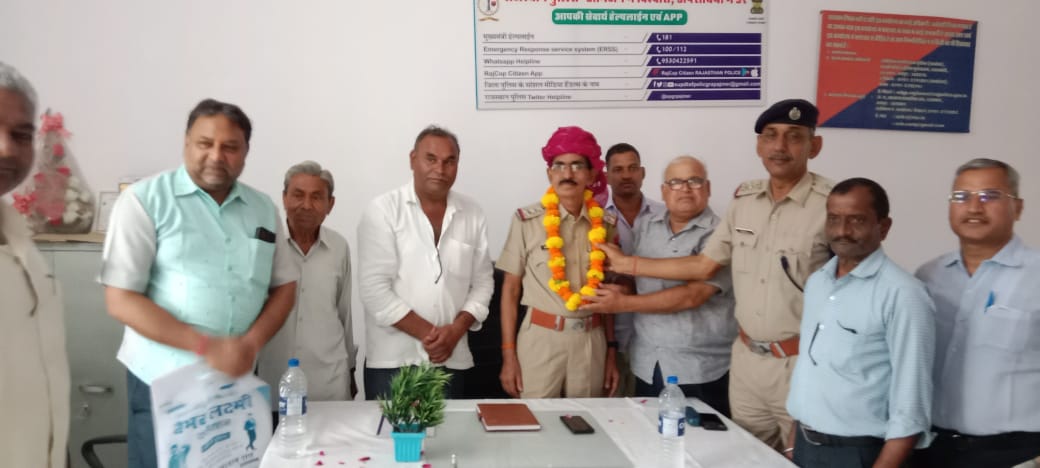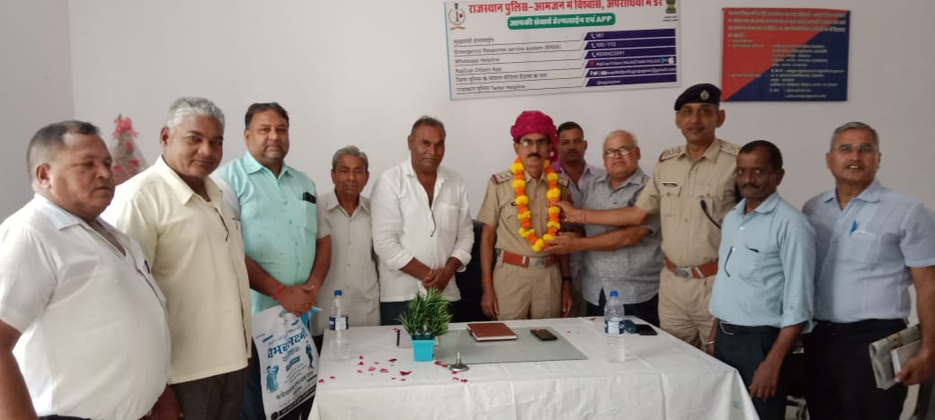 इससे पूर्व नये सी आई गुलजारी लाल का पुर्व पालिकाध्यक्ष रतन राजोरा, उपाध्यक्ष संजय पारीक ,सरपंच प्रतिनिधि महेश कुमावत, छत्रपाल कुमावत, हनुमान लाल कुमावत, संजय गुप्ता , नेमीचन्द गुजर ने राजस्थानी परम्परा से साफा पहनाकर कर स्वागत किया ।