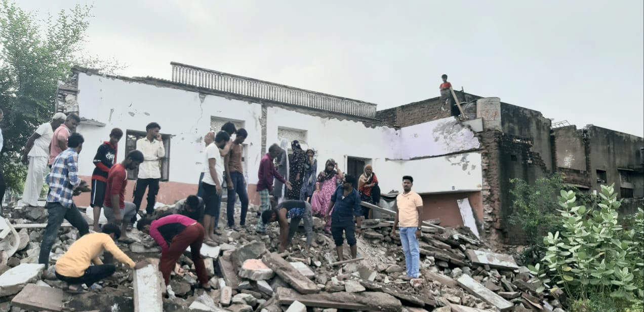 जिसके तीन कमरे जमीदोस हो गए। पप्पू शाह ने बताया कि देर रात तक बारिश हुई, जिसके बाद बिजली चली गई थी जिसकी वजह से पूरा परिवार मकान से बाहर आकर उमस के चलते घर के आंगन में आकर सो गया था। इस दौरान अचानक 12 बजे बाद तेज धमाके की आवाज आई और मकान लगभग पूरी तरह से ढह गया।
