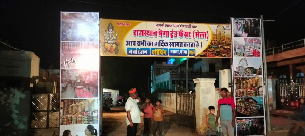 रियाँबड़ी स्थित विजय बाग मे राजस्थान मेगा ट्रेड फैयर मेले का हुआ शुभारम्भ। बैंड बाजो के साथ हरीशगीरी महाराज ने फीता काटकर श्री गणेश जी महाराज की पूजा अर्चना कर किया मेले का शुभारम्भ।