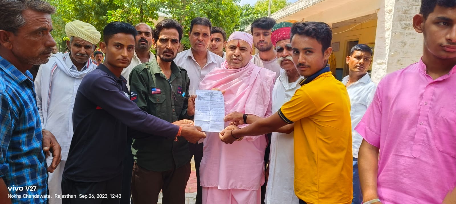 नोखा चांदावता में कला संकाय के लिए रेन आचार्य पीठाधीश्वर को सौंपा ज्ञापन