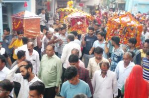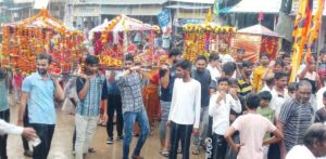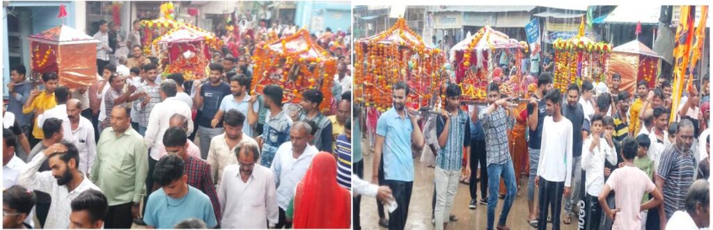 बारिश में भगवान को पालकी में बैठाकर कस्बे के लगाई परिक्रम