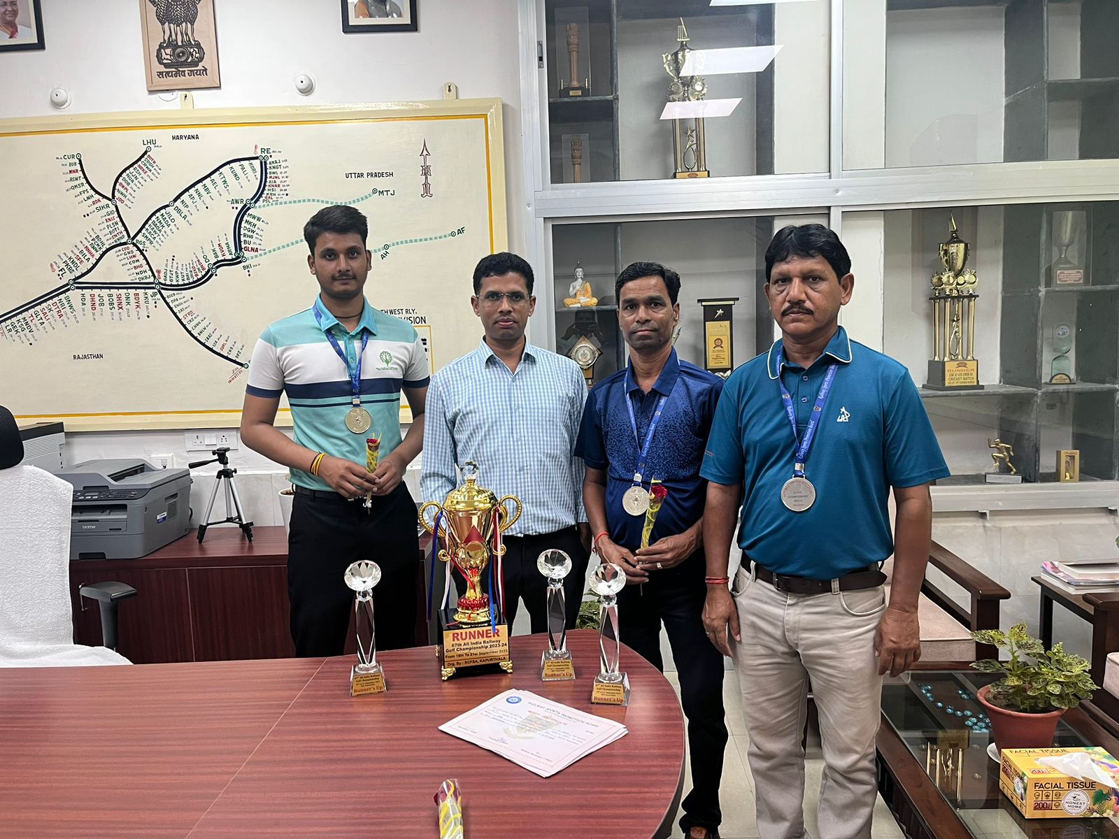 उत्तर पश्चिम रेलवे जयपुर मंडल के खिलाड़ियों नें जीता रजत पदक हासिल किया कपूरथला में आयोजित 67वीं ऑल इंडिया रेलवे गोल्फ चैंपियनशिप में रेलवे के 17 जोन की टीमों ने हिस्सा लिया,विजेता एनडब्ल्यूआर टीम के खिलाड़ी सोमवार को जयपुर पहुंचे,टीम में जयपुर मंडल के गिर्राज सिंह,दीपककुमार यादव, दीपेंद्र सिंघल और महेंद्र सिंह नें भाग लिया।