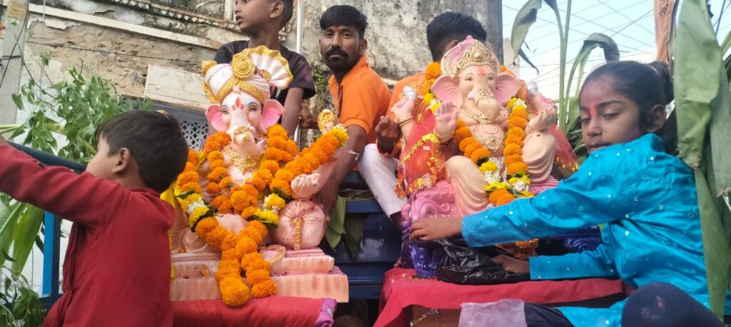 भक्त सिर पर केसरिया साफा और गले में भगवा दुपट्टा डालकर नाचते दिखाई दिए। श्रद्धालुओं के घरों एवं व्यवसायिक प्रतिष्ठानों में गणेश चतुर्थी पर गणपति स्थापना की गई थी। आज अनंत चतुर्दशी पर कस्बे के अमृत सरोवर में सूर्यास्त में सभी गणेश प्रतिमाओं का वैदिक मंत्रों के साथ महा आरती कर भक्तों में प्रसाद का वितरण किया गया तत्पश्चात गणेश प्रतिमाओं का विसर्जन किया गया।इधर कस्बे में ईद मिलादुन्नबी पर्व पर मुस्लिम समाज के युवा बुजुर्गों ने भी कस्बे में अपने धर्मगुरुओं को घोड़े पर बिठाकर जुलूस निकाला।