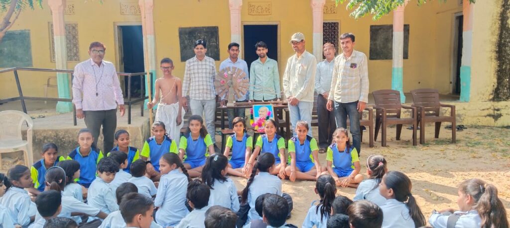 जिसमें बच्चों को वास्तविक चरखे से रूबरू करवाया और दांडी यात्रा के बारे मे बताया गया इस मौके पर अध्यापक लीलाराम,भंवरसिंह,सुरेश वर्मा,महावीर दाधीच, नरेश टांडी,अशोक ,जयराम आदि मौजूद रहे।