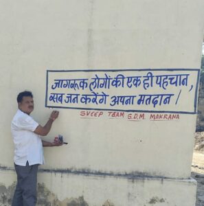 मकराना (मोहम्मद शहजाद)। निर्वाचन रजिस्ट्रीकरण पदाधिकारी एसडीएम मकराना के निर्देशानुसार इन दिनों मतदाता जागरूकता अभियान का कार्य जोरों से शहरी और ग्रामीण क्षेत्र में स्वीप टीम द्वारा किया जा रहा है।
