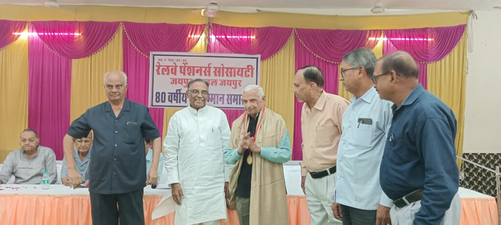 कार्यक्रम मे मुख्य अतिथि रेलवे बोर्ड के सदस्य वीएस कुशवाह विशिष्ठ अतिथि एडीआरएम जयपुर राजीव दीक्षित, वरिष्ठ डीपीओ डॉ. हीना अरोडा रहे। रेलवे पेंशनर्स सोसायटी शाखा फुलेरा के कोषाध्यक्ष सीपी त्रिपाठी ने बताया कि फुलेरा से मुख्य बुकिंग पर्यवेक्षक के पद से सेवानिवृत श्रीनारायण शर्मा नाकाबाबू, किशनलाल व रामानन्द शर्मा का 80 वर्ष पूरे हाेने पर माला-शाल ओढाकर व मेडल देकर विशेष सम्मान किया गया।