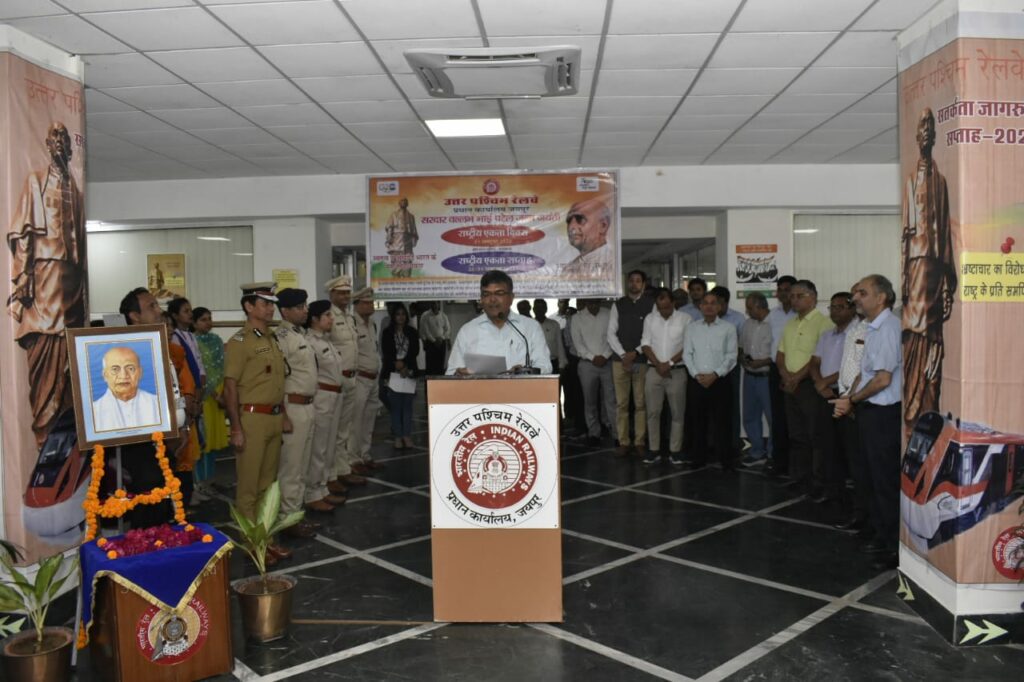 उत्तर पश्चिम रेलवे द्वारा सरदार वल्लभ भाई पटेल की जन्मजयंती के अवसर पर राष्ट्रीय एकता दिवस मनाया गया, जिसमें उत्तर पश्चिम रेलवे के महाप्रबन्धक अमिताभ ने सरदार वल्लभ भाई पटेल की फोटो पर माल्यापर्ण किया एवं उपस्थित सभी रेलकर्मियों को राष्ट्रीय एकता की शपथ दिलवाई। इसी के साथ उत्तर पश्चिम रेलवे पर मनाये जा रहे सतर्कता जागरूकता सप्ताह में संगोष्ठी तथा नुक्कड़ नाटक का आयोजन भी किया गया।