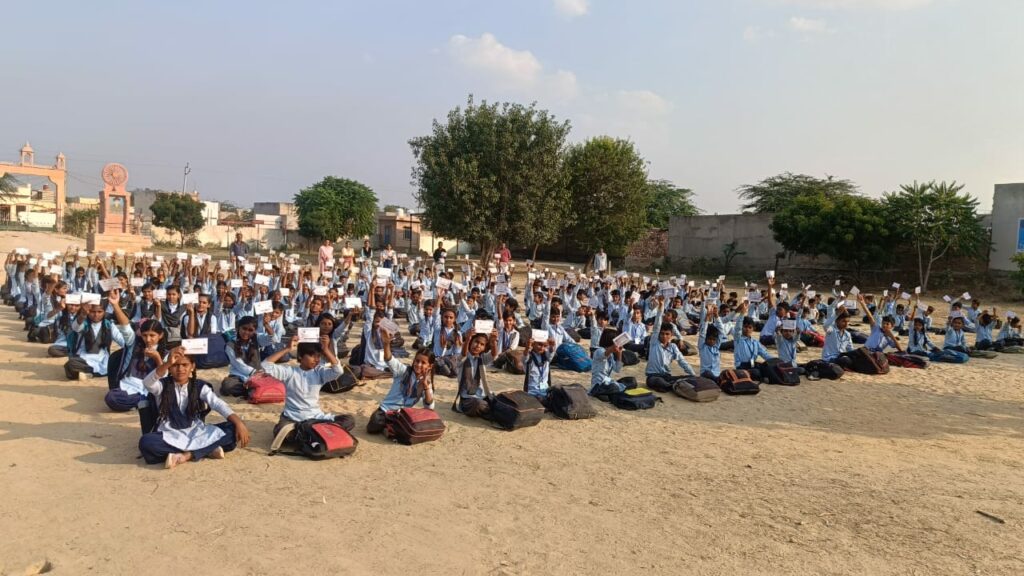 साथ ही वृद्जन व दिव्यांग मतदाताओ को लम्बी कतारों से मुक्ति कि बात भी निमंत्रण पत्र में लिखी गयी |इस दौरान भाग संख्या 239व 240के बूथ लेवल अधिकारी जीतेन्द्र जांगिड व गिरधारी राम जाट मतदान का महत्त्व व जिम्मेदार नागरिक बनने के बारे में बच्चो को बताया गया तथा अधिक से अधिक मतदान करने कि अपील की | इस दौरान सभी विद्यार्थियों के साथ प्रधानाचार्य महेन्द्र कुमार,पूरा राम बांगडा,दीपशिखा कँवर,गजेन्द्र शर्मा,दीपाराम प्रजापत,सुमन खंदोलिया,संतोष बांता, प्रकाश चंद ,सुनीता लटियाल ने आलस को भगायेंगे,वोट करने जायेंगे का नारा लगाकर सभी ने मतदान करने और दुसरो को प्रेरित करने का संकल्प लिया |