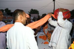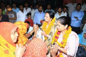 जनसंपर्क के दौरान गांव में विद्याधर का लोगों नेबिछाए पलक पावड़े किया स्वागत,