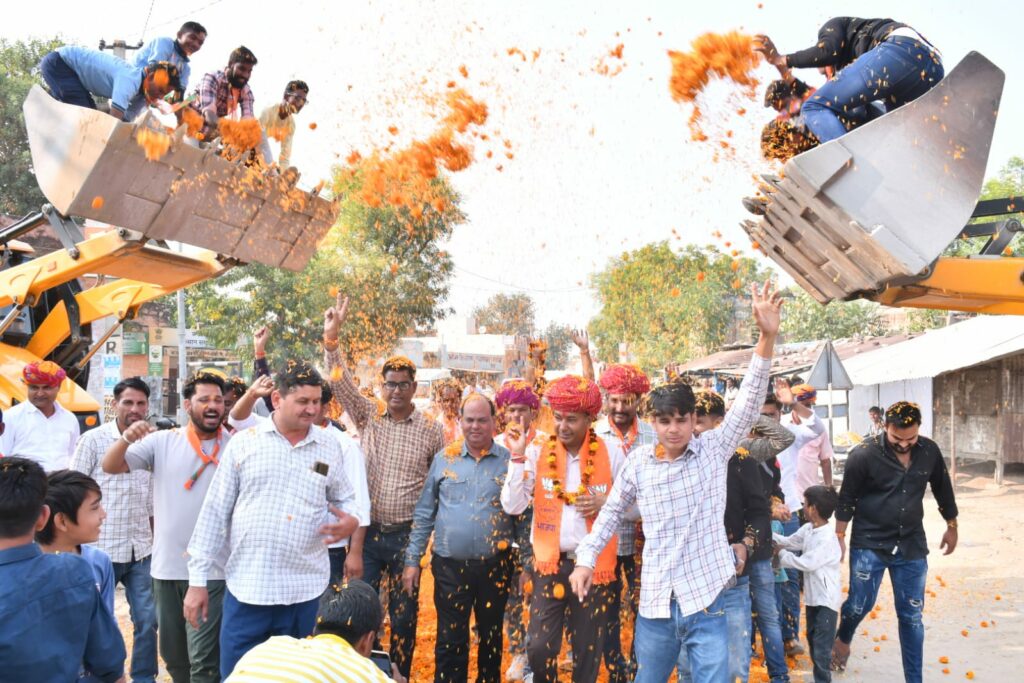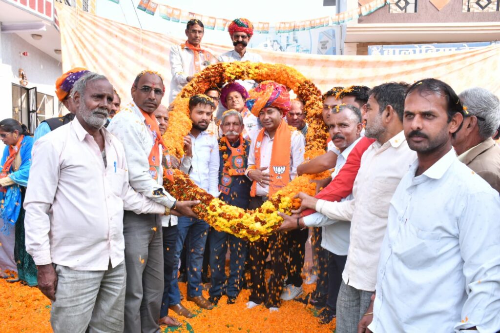 उपरोक्त गांवों में जनसंपर्क के दौरान जगह जगह आम जन के चहेते, युवा और लाडले विधायक एवम भाजपा प्रत्याशी निर्मल कुमावत का माला साफा पहनाकर मुंह मीठा करवाकर तथा जेसीबी से पुष्प वर्षा कर भव्य स्वागत अभिनंदन किया।इस अवसर पर निर्मल कुमावत के साथ मंडल अध्यक्ष श्रीमान बद्री नारायण शर्मा, महामंत्री दयाल सिंह, विष्णु दास, स्वामी नारायण बागोरिया, भवानी सिंह, सुरजीत सिंह, मालीराम जाट, शिवरामपुरी, नरेंद्र वर्मा, संदीप प्रजापत गोपाल लाल गुर्जर,भोलू राम रेगर, रतनलाल मीना, रामचंद्र मीणा, गोपाललाल कुमावत, मूलचंद जाट,मूलचंद कुमावत, गणेश मेहरड़ा,श्री राम गुर्जर, नारायण गुर्जर, जवाना राम जाट, पूजाराम सांवरिया, पुन्नाराम गुर्जर, नंदकिशोर जांगिड़,सहित सैंकड़ों कार्यकर्ता गण तथा प्रबुद्ध जन उपस्थित रहे।