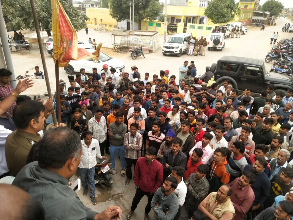 फोटो-03हसोर.ग्राम भकरी में दलित युवकों के साथ मारपीट की घटना के बाद रोष जताते हिंदूवादी संगठनों के लोग।
