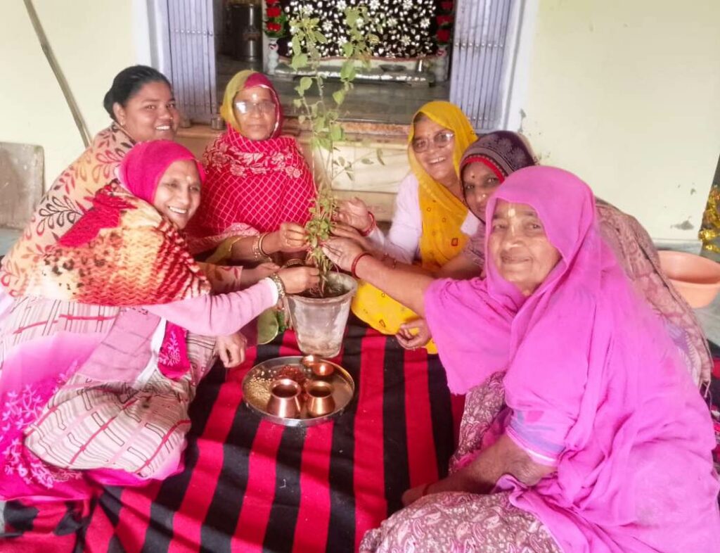 सुबह शाम श्रद्धा भाव से इसकी पूजा की जाती है तुलसी को लक्ष्मी का रूप माना जाता है ऐसी मान्यता है कि यदि घर में तुलसी का पौधा हरा भरा हो तो घर में सुख-शांति बनी रहती है। तुलसी पूजा से बुरे विचारों का नाश होता है पद्म पुराण के अनुसार तुलसी पत्ते से टपकता हुआ जल यदि मनुष्य अपने सिर पर लगाता है तो इतना करने पर से उस मनुष्य को गंगा स्नान और दश गोदान का फल मिलता है तुलसी पूजा से रोग नष्ट होते हैं और अ‘छा स्वास्थ्य प्राप्त होता है। संतोषदेवी टाक ने जिस घर में तुलसी रहती हो उस घर में देवता निवास करते हैं पर्यावरण शुद्ध पूरे देश में प्रदेश में आज तुलसी दिवस के रूप में मनाया जा रहा है धार्मिक स्थलों का सार्वजनिक जगहों पर तुलसी के पौधा लगाने का आवाज उनकी देखरेख महिला मंडल ले रही है।महिला मंडल द्वारा अनेक धार्मिक कार्यक्रम आयोजित किए जाते हैं महिला मंडल द्वारा चारभुजा मंदिर परिसर व तुलसी की 108 परिक्रमा लगाने और महिलाओं के सशक्तिकरण के बारे में जानकारी दें महिला संगठन को मजबूत करने का आह्वान किया। अपने परिवार की खुशहाली की मनोकामनाएं मांगी देश गांव की खुशहाली की कामना की इस दौरान इस दौरान संतोषदेवी टाक,सुंदरदेवीसैन , ज्ञानकंवर,गीता देवी लखारा,कोमल सैन,जसु देवी सेन,रामजोद देवी उपाध्याय,कौशल्या देवी बोहरा,शांति देवी वैष्णव सहित महिला मंडल महिलाएं आदि मौजूद रही ।