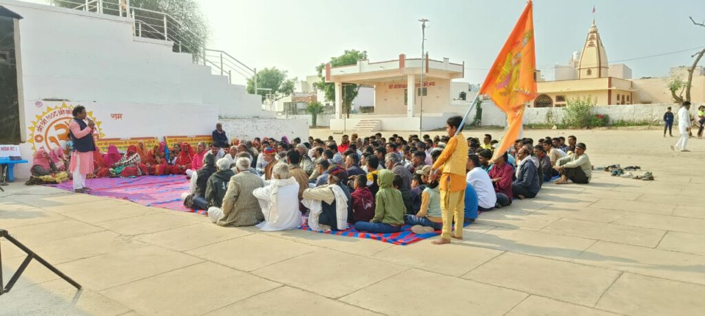 पंचायत समिति मूंडवा के गांव रूण में शनिवार को सुबह 11 बजे रतना सागर तालाब से धर्म प्रेमियों की उपस्थिति में गाजे-बाजे के साथ यह कलश यात्रा भोमियासा मंदिर में पहुंची जहां पर धर्म प्रेमियों की उपस्थिति में 22 जनवरी को अयोध्या में राम मंदिर शुभारंभ के मौके पर आने के लिए पीले चावल बांटे गए।