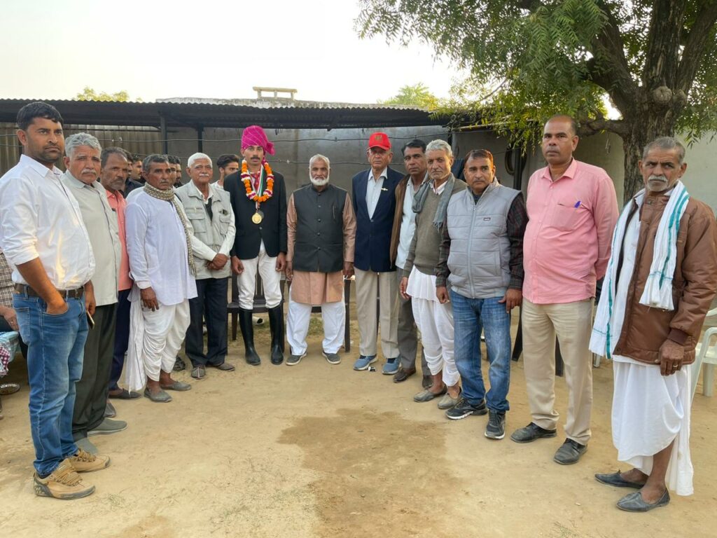 [बाबूलाल सैनी]/ पादूकलां। समीपवर्ती ग्राम पंचायत सथानाकलां के होनहार घुड़सवार शाहरुख खान का बेंगलुरु में आयोजित राष्ट्रीय घुड़सवारी एकयुयुटेशन‌ चैंपियनशिप के टेरड पेकिग में स्वर्ण पदक जीतने पर उसके गांव सथाना में परिवारजन और ग्रामीण वासियों द्वारा गर्म जोशी से स्वागत किया गया। हाकम अली खान ने बताया कि सथाना गांव हमेशा से ही खेलों में, सेन्य युद्ध प्रथम, द्वितीय ‌मे‌ अपने‌ पराक्रम का लोहा मनवाया है।
