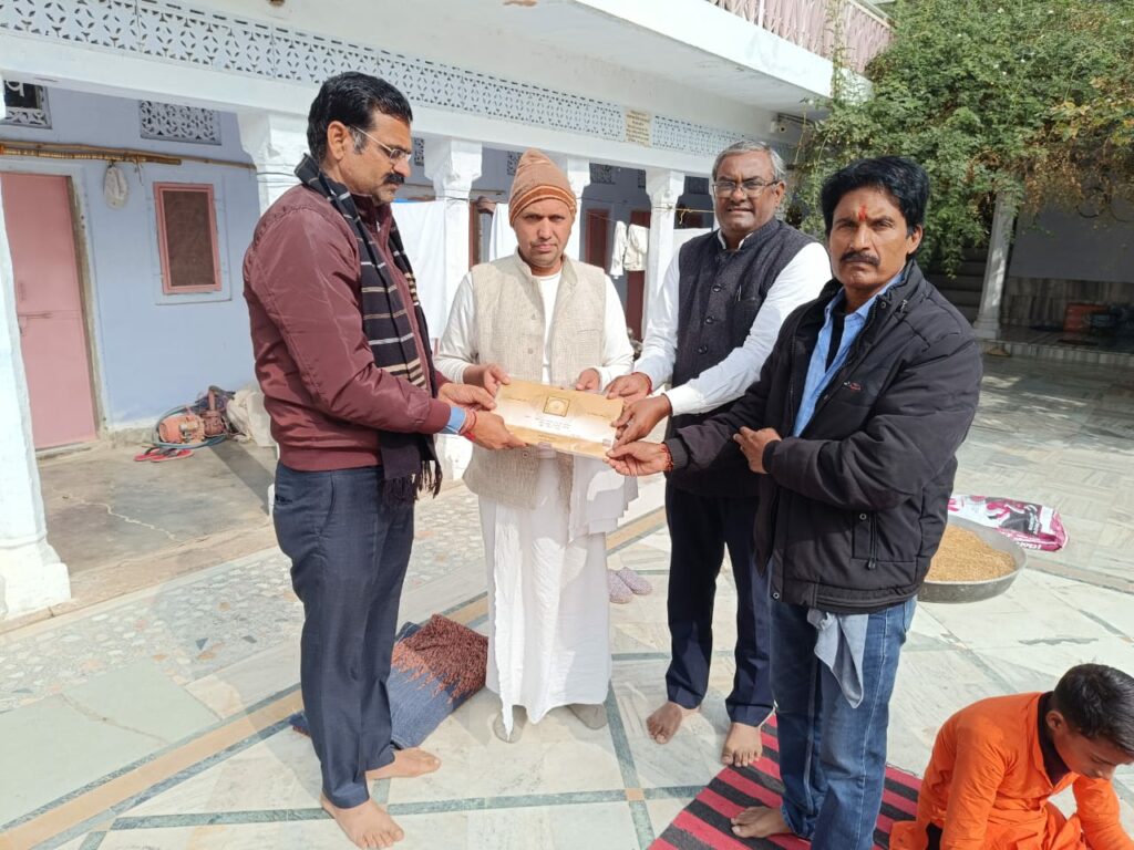 भैराणा धाम श्री श्री 1008 गोवर्धन दास महाराज तथा सांभर लेक स्थित रमण नाथ महाराज को अयोध्या धाम से आए आई निमंत्रण पत्रिका देकर 22 जनवरी को श्री राम जन्मभूमि अयोध्या धाम का निमंत्रण शिवजी राम कुमावत,