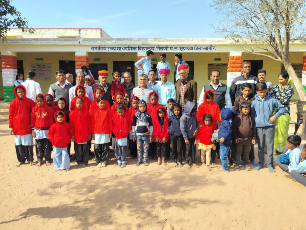 संखवास. निकटवर्ती गांव सैनणी के राजकीय विद्यालय में गुरुवार को जरूरतमंद 175 विद्यार्थियों को मकर संक्रांति के उपलक्ष में नि:शुल्क स्वेटर का वितरण किया गया। प्रधानाचार्य दिलीप कुमार सेन ने बताया कि लक्की फैंसी स्टोर मेड़ता रोड़ के प्रोपराइटर भामाशाह श्री सोहनलाल, श्री लक्ष्मी नारायण प्रजापत व स्थानीय विद्यालय के शिक्षक श्री विक्रम सिंह ने विद्यालय के 175 जरूरतमंद विद्यार्थियों को नि:शुल्क स्वेटर वितरण किया गया। स्वेटर पाकर बच्चे खिलखिला उठे।