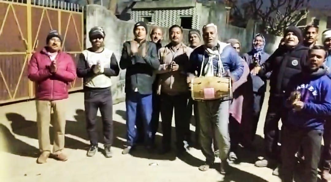 कीर्तन करते हुए शहर में प्रभात फेरी निकाली