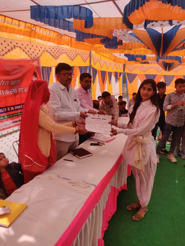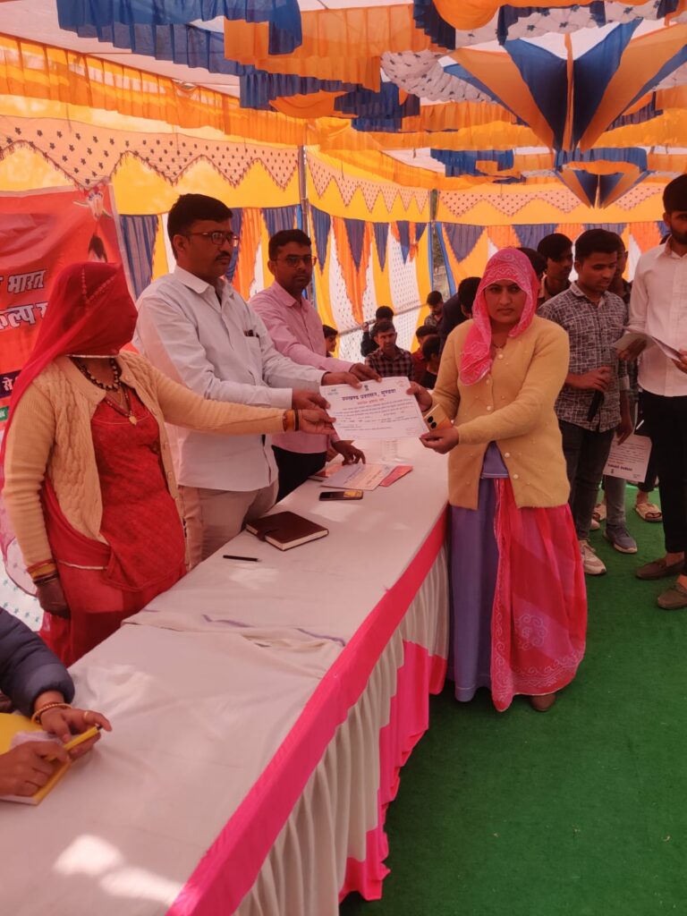 इस मौके पर मुंडवा पंचायत प्रसार अधिकारी हनुमान राम चांगल ने योजनाओं के लाभार्थियों को प्रमाण पत्र वितरित किए ।इस दौरान ग्राम ग्राम पंचायत सरपंच इंदिरा देवी गोलिया ने महिला एवं बाल विकास विभाग शिविर और नवजात का जन्मोत्सव में गोद भराई की रस्म के दौरान आंगनबाड़ी कार्यकर्ताओं के साथ उपस्थिति रहे। इस मौके पर ग्राम पंचायत कार्यक्रम प्रभारी रामेश्वर गोलिया,उपसरपंच क़ादीर शाह, हनुमान चांगल पंचायत प्रसार अधिकारी मुंडवा, पाँचाराम आर आई व पानी, बिजली, बैंक सहित विभिन्न विभागों के अधिकारी कर्मचारी मौजूद रहे ।