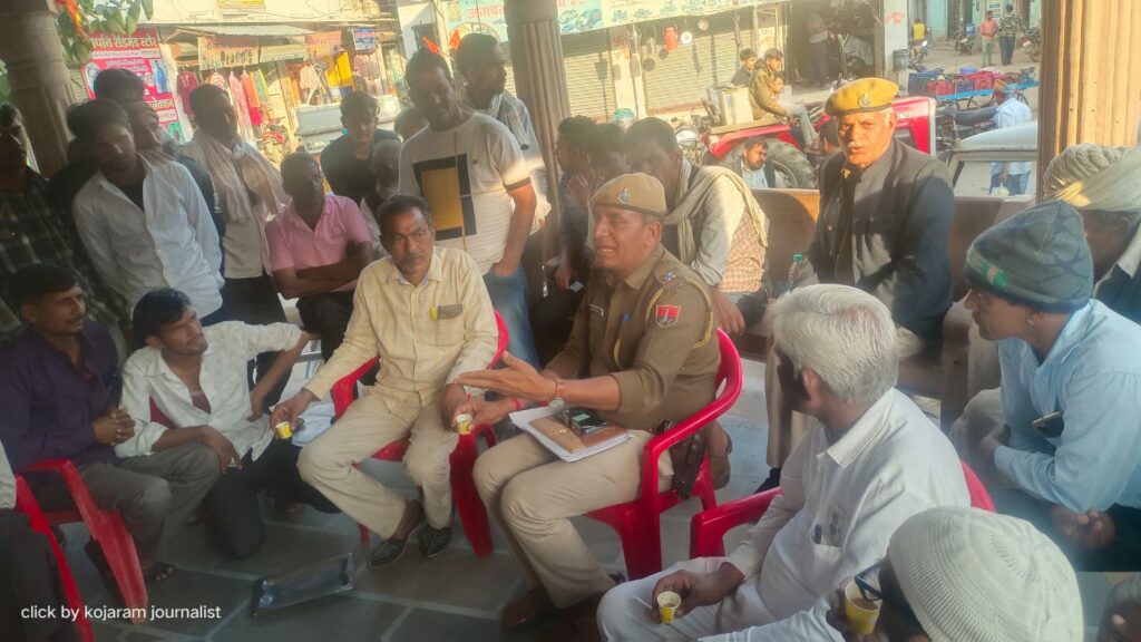 इस पर ग्रामीणों ने जानकारी देते हुए बताया कि कस्बे में कलश यात्रा, सुंदर काण्ड का पाठ व दीपोत्सव का प्रमुख कार्यक्रम है। इस पर पुलिस ने कहा कि आपसी भाईचारा रखते हुए शांति से कार्यक्रम का आयोजन करे। साथ ही कहा कि कानून को हाथ में लेने वाले के साथ पुलिस प्रशासन सख्ती से निपटेगी। बैठक में समाजसेवी भीकाराम मेघवाल, ओमप्रकाश गौड़, श्रीनारायण अट्टल, रामरतन चौकीदार, हबीब गौरी, प्रेम निम्बड़, भावंडा थाना से संखवास बिट अधिकारी चंदाराम, डालुराम सहित गाँव के मौजिज ग्रामीण मौजूद रहे।