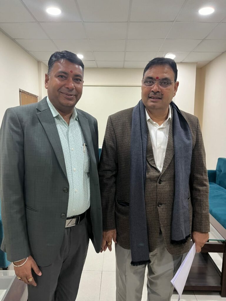 फुलेरा (दामोदर कुमावत) भा ज पा ओबीसी मोर्चा के राष्ट्रीय मंत्री एवम पूर्व विधायक निर्मल कुमावत ने मुख्यमंत्री भजनलाल शर्मा से शिष्टाचार भेंट कर अपने कार्यकाल में फुलेरा विधान सभा क्षेत्र में अब तक हुए विकास कार्यों व मुख्यमंत्री के कुशल नेतृत्व में आगामी समय में होने वाले विकास कार्यों को लेकर सौहार्द पूर्ण वातावरण में विस्तृत चर्चा की।