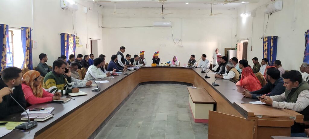सहायक विकास अधिकारी जगदीश प्रसाद माली ने बैठक में एंजेड़ावार विभागीय चर्चा का आयोजन करवाया। पंचायत समिति सदस्य हाउलाल द्वारा प्रस्ताव रखा गया कि गर्मी के मौसम से पहले-पहले पेयजल किल्लत को दूर करने के लिए पेयजल आपूर्ति करावें। इस दौरान उपजिला प्रमुख शोभाराम जयपाल, किसान मोर्चा जिलाध्यक्ष मदनराम गौरा, जिला परिषद सदस्य हीराराम, पंचायत समिति सदस्य विजय कुमार, चेनाराम गोदारा, सेवली देवी, पूजा देवी, दुर्गा देवी एवं सरपंचगण जसनगर अशोक सांखला, जडाऊ,घेवरी देवी, बीजाथल श्री संग्रामराम बोराणिया, रियांबड़ी गिरधारीलाल माली, जाटावास बाबूड़ी देवी, गवारड़ी बतूल बानो , महिला एवं बाल विकास अधिकारी डालूराम कुमावत सहित अन्य विभागो के अधिकारी एवं कर्मचारीगण उपस्थित रहे।