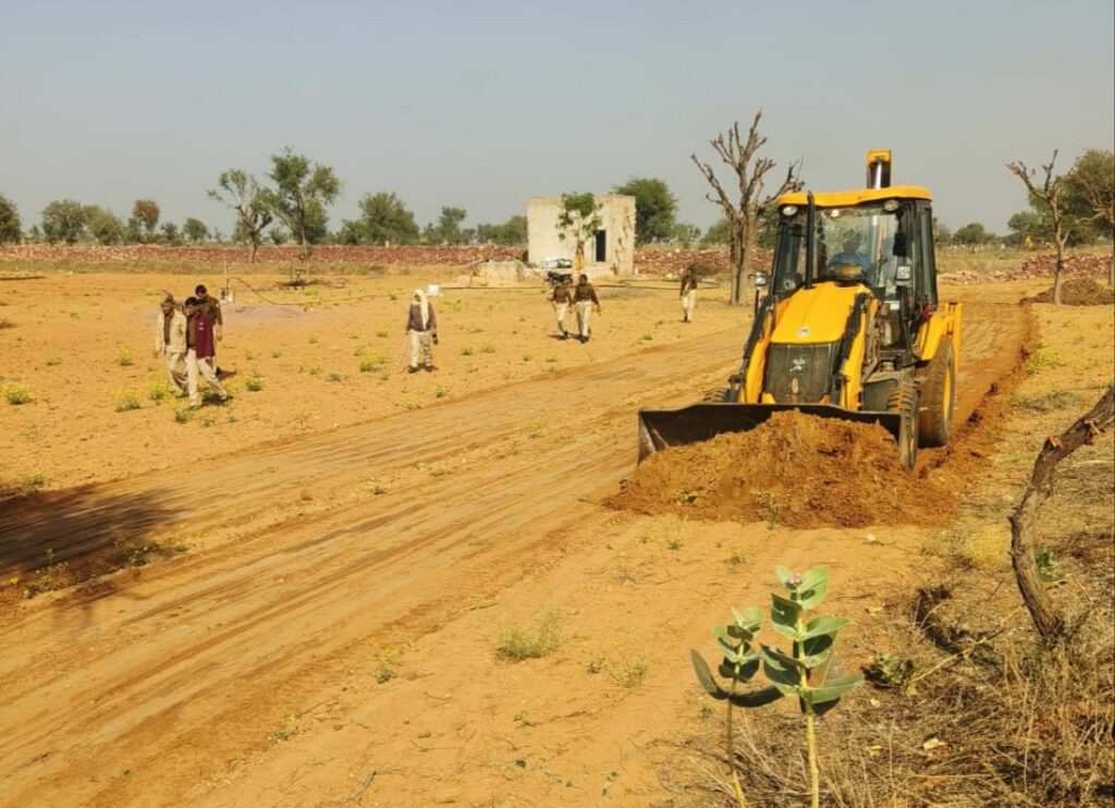 कोजाराम निम्बड़/ संखवास. क्षेत्र की ग्राम पंचायत रजलानी से रिड़मलजी की ढाणी तक जाने वाले कटाणी रास्ते से लगभग दो किलोमीटर तक प्रशासन एवं पुलिस बल की मौजूदगी में अतिक्रमण हटाया गया। ग्रामीणों की मांग पर युवा सरपंच पारस गुर्जर के अथक प्रयासों से कटाणी रास्ता खुलने से ग्रामीणों ने खुशी मनाई व सरपंच पारस गुर्जर का आभार जताया।