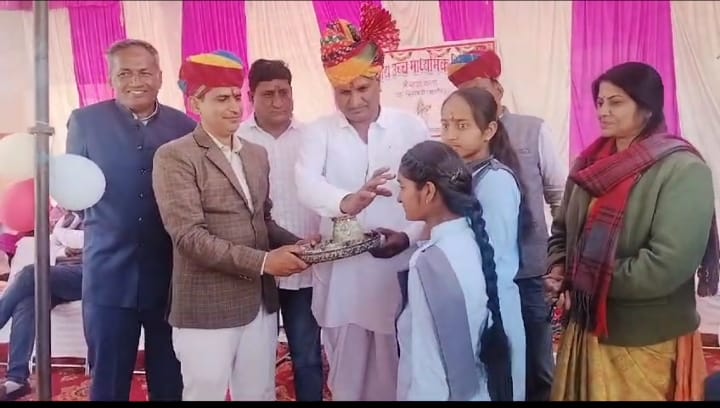 तथा कहा कि हमे बताया गया कि यह छोटा सा विद्यालय हे, परन्तु यहां समरसता, मेहमानों के अधिकाधिक आगमन,मान सम्मान के आधार पर यह बहुत बड़े हृदय का विद्यालय हैं। कार्यक्रम में छात्रा कोमल खोरवाल ने सुरीली राग से मां की महिमा हेतु “मेरी मां के बराबर कोई नहीं” गायन से सभी का मन मोह लिया तथा ‘लक्ष्मी एंड पार्टी’ ने बाल विवाह पर नाट्य का मंचन कर कुरीतियां मिटाने का संदेश दिया। विद्यालय में सहयोग करने वाले भामाशाहों का सम्मान किया गया। इस क्रम में विद्यालय के दस अध्यापकों का भामाशाह के रूप में विधायक ने सम्मानित किया। प्रधानाचार्य राम गोपाल दास ने आये हुए अतिथियों का धन्यवाद ज्ञापित किया