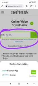 Step4: So now you open a browser like Google Chrome in your mobile. And search Savefromnet in the search bar.