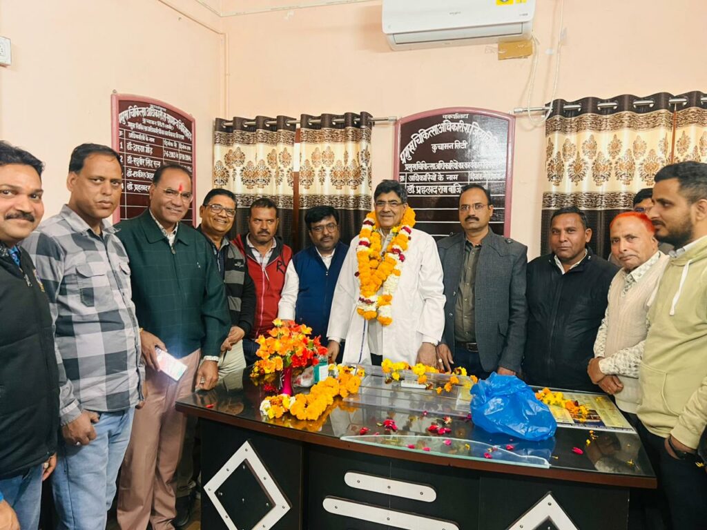 कुचामनसिटी। राजकीय जिला चिकित्सालय कुचामन सिटी में सोमवार को प्रमुख चिकित्सा अधिकारी डॉक्टर वी के गुप्ता के कार्यभार ग्रहण करने करने पर कुचामन केमिस्ट सोसायटी की ओर से गुप्ता का स्वागत किया गया।
