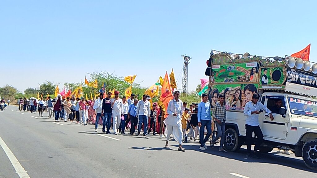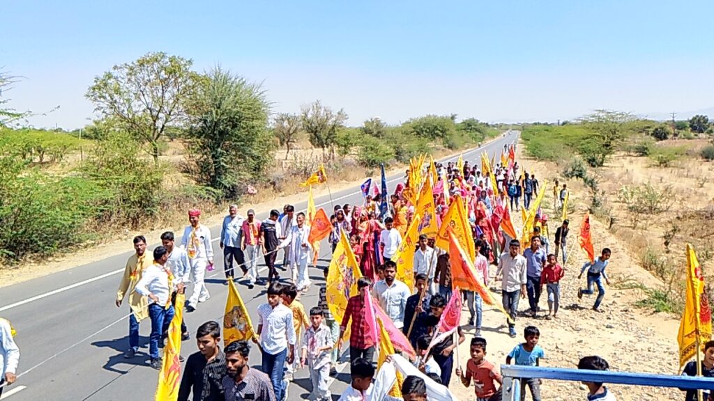 इसी प्रकार मेवड़ा से पैदल चलकर बाबा श्याम सतरंगी ध्वज चढ़कर गांव व प्रदेश की खुशी की कामना की इसी तरह ग्राम अरनियाला, सथाना, सेंसडा, गवारडी मालियों की ढाणी, रोहिसडा पैदल सतरंगी ध्वजा लेकर बाबा श्याम के गुणगान करते हुए डीजे की धुन पर थीरकते हुऐ इसी प्रकार जगह-जगह श्याम भक्तों का पुष्प वर्षा कर ग्रामीणों ने स्वागत किया।