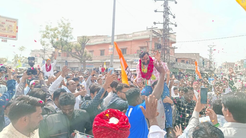 आपको बता दें कि हनुमान बेनीवाल का काफिला नागौर जिले के परबतसर कस्बे से रोड शो के रूप में रवाना हुआ। जहां से बिदियाद होते हुए मकराना के गुणावती घाटी चौराहे से होता हुआ शहर के बाई पास तिराहा पर पहुंचा। जहां पर मकराना विधानसभा क्षेत्र के कांग्रेस व आरएलपी के कार्यकर्ताओं द्वारा पुष्प वर्षा करते हुए माला व साफा पहनाकर भव्य स्वागत किया गया।