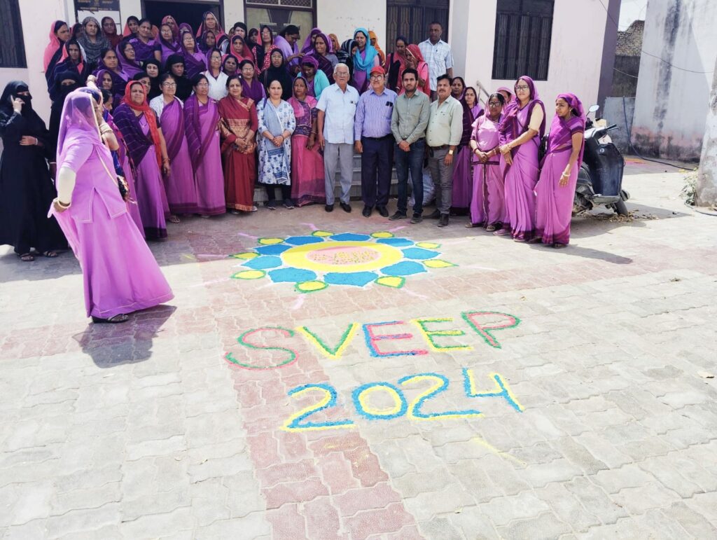 जिसमें पंचायत समिति सभागार के बाहर एक आकर्षक रंगोली सजाकर मतदाता जागरूकता का संदेश दिया गया। इसके पश्चात सभागार में विकास अधिकारी हापूराम, मुख्य ब्लॉक शिक्षा अधिकारी दीपक कुमार शुक्ला, महिला एवं बाल विकास अधिकारी कुलदीप सिंह द्वारा आंगनबाड़ी कार्यकर्ताओं को विभिन्न गतिविधियां करवाई।