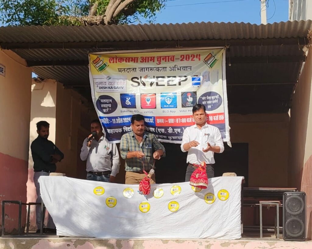 चुनाव शाखा प्रभारी राम अवतार बंजारा ने लोकतंत्र में भागीदारी निभाने देश के प्रति फर्ज निभाने मतदान करने कि अपील की। स्वीप टीम सदस्य मुरली मनोहर मेघ ने कतपूतली के सुन्दर प्रदर्शन से आमजन को मतदान का महत्व बताया।