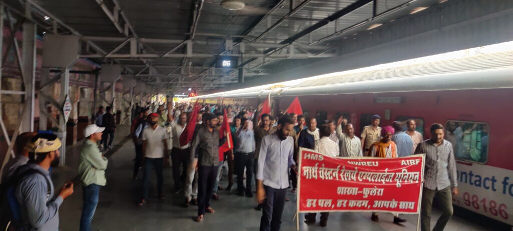 फुलेरा (दामोदर कुमावत) नॉर्थ वेस्टर्न रेलवे एम्पलाई यूनियन के बैनर तले फुलेरा लॉबीपर मंगलवार को शाम 6 बजे रेलवे प्रशासन के खिलाफ रनिंग स्टाफ की समस्याओं को लेकर भारी विरोध प्रदर्शन किया गया।