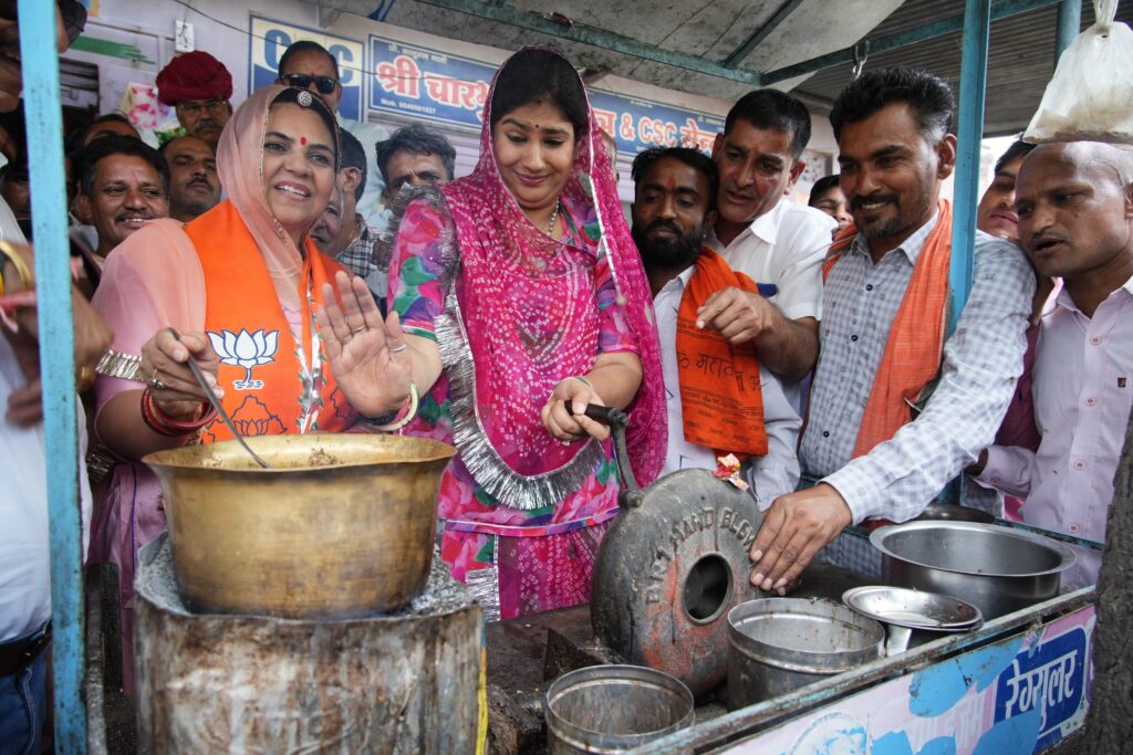 चाय की चुस्की, ली तो गिलुंड में स्वयं ने बनाई – आम महिलाओं से रूबरू होकर गले लगा कर साथ बैठ कर हर एक की समस्याओं से रुबरु हो रहि है जिसके चलते महिलाओं का कारवां दीन ब दिन परवान चढ़ रहा है जिसके चलते भाजपा प्रत्याशी महिमा कुमारी मेवाड का जगह जगह उत्साह से फूल पत्ती बर्षाकर भव्य स्वागत किया जा रहा है व साथ ही नाथद्वारा विधायक विश्वराज सिंह मेवाड़ व कार्यकर्ताओं के साथ चाय एवं पोहे का नाश्ता किया करते हुए सभी कार्यकर्ताओं से चाय पर चर्चा के साथ स्थानीय लोगों से मुलाकात कर आगामी 26 अप्रैल को भारतीय जनता पार्टी के पक्ष में अधिक से अधिक मतदान करने की अपील की जारही है। गत रात्रि को महिमा कुमारी मेवाड़ का नाथद्वारा में लगने वाले गणगौर उत्सव मेले में पुष्प वर्षा कर स्वागत किया। साथ इस दौरान वहां के स्थानीय संस्कृत विद्यालय के बच्चों से मुलाकात कर अध्ययन की जानकारी ली। इस दौरान बच्चों ने संस्कृत के श्लोकों का पाठ किया। प्राप्त जानकारी के अनुसार भाजपा प्रत्याशी महिमा कुमारी मेवाड का रविवार को भी दौरा एव जनसंपर्क राजसमंद में – प्रातः 7 बजे आंबेडकर जयंती के अवसर पर आंबेडकर सर्किल पर पुष्पांजलि के बाद फरारा, पुठोल, केलवा, खटामला, सायं 4 बजे भाजपा जिला कार्यालय राजसमंद के के बाद कुंवारिया में जनसंपर्क करेगी। इस अवसर पर वरिष्ठ नेताओं समेत राजसमंद विधायक दीप्ति माहेश्वरी भी दौरे में साथ रहेगी।