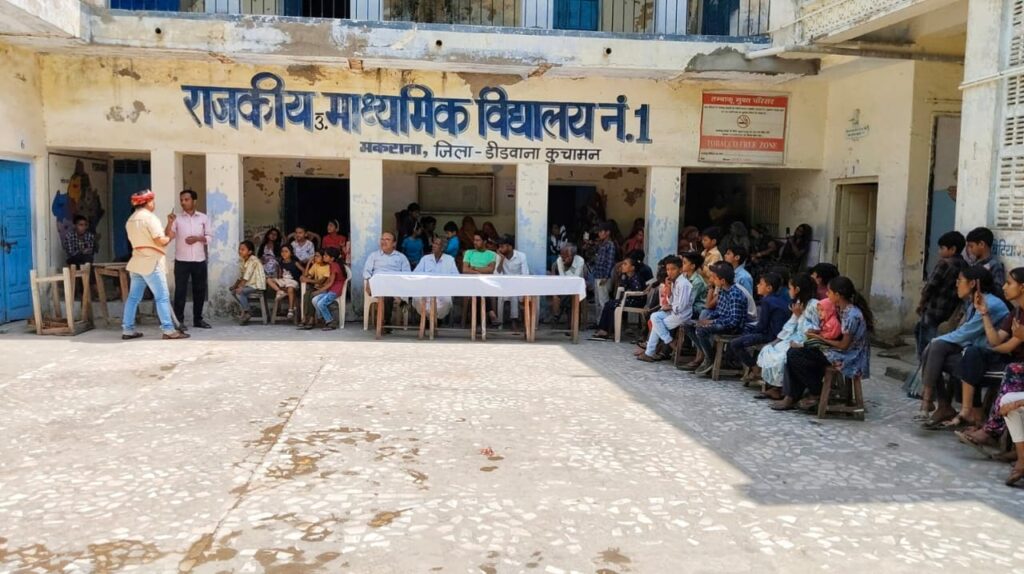 उपस्थित मतदाता समूह के सामने मुरली मनोहर और महेश जी ने नुक्कड़ नाटक प्रस्तुति दी। कार्यक्रम में रामनिवास गुणपाल, बीएलओ कृष्णा राम, छोटू राम चांदेल, भंवर लाल राजोरा, लोकेंद्र सिंह आदि ने कार्यक्रम में भाग लिया। आओ बूथ चले अभियान के तहत कृष्णा राम बीएलओ ने सभी को वोटर गाइडलाइन का वितरण किया। इस अवसर पर सीबीइओ दीपक शुक्ला भी उपस्थित रहे। मकराना ब्लॉक के 15 बूथ ऐसे थे जहां पिछले लोकसभा चुनाव में वोटर टर्न आउट कम हुआ था वहां भी अधिकारियों ने मतदान के प्रति लोगों को जागरूक किया ताकि वोटर टर्न आउट बढ़ सके।