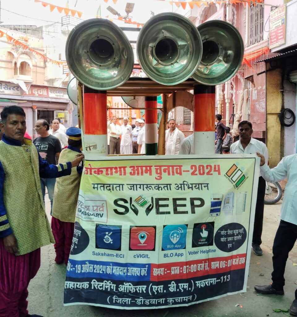 जिसमें करीब 500 महिला पुरुषों को अपने वोट का महत्व बताया गया एवं मतदान के समय वांछनीय 12 दस्तावेज की जानकारी दी गई तथा शत प्रतिशत मतदान करने का संकल्प करवाया। इस दौरान स्वीप टीम सदस्य अनिल कुमार भाटी, मुरली मनोहर मेघ, महेश कुमार ने सहयोग किया।