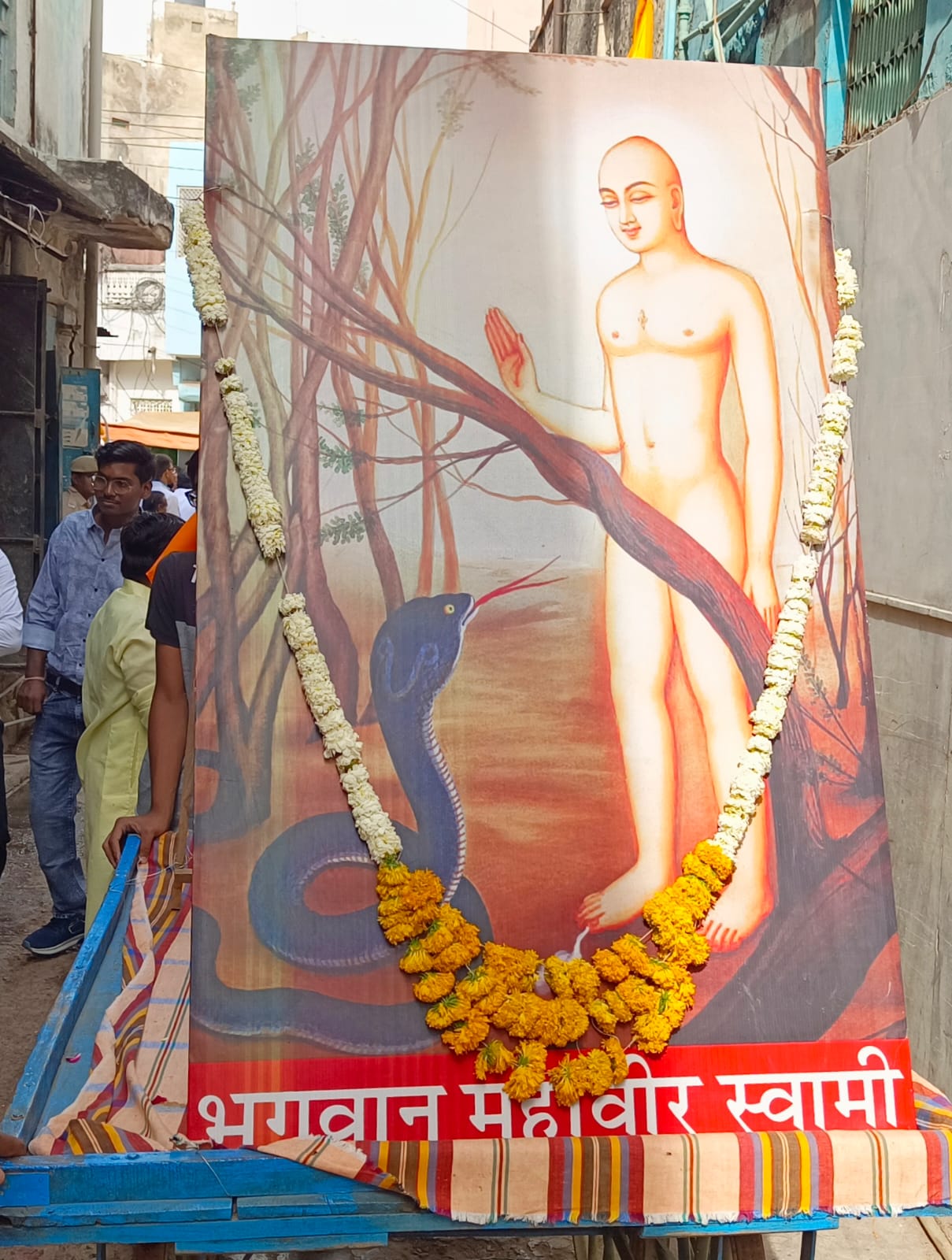 सकल जैन समाज की ओर से भगवान महावीर की भव्य शोभायात्रा सुबह 8 बजे श्री आदिनाथ दिगम्बर जैन मंदिर से रवाना होकर मीना बाजार होते हुए सदर बाजार पहुंची और वहां से चारभुजा मार्ग होते हुए जय शिव चौक के रास्ते से रेलवे स्टेशन पहुंची। भव्य शोभायात्रा में लोगों ने पुष्प वर्षा कर पालकी का स्वागत किया।