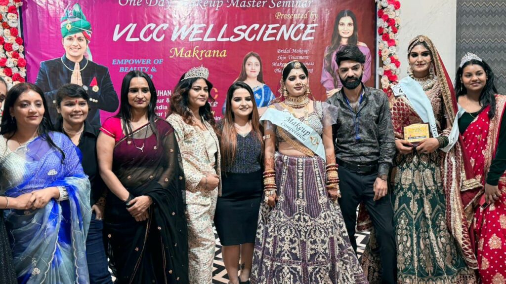 मकराना (मोहम्मद शहजाद)। वर्तमान समय में महिलाओ को लघु उद्योग ब्यूटी पार्लर कार्य को लेकर प्रोत्साहित करने के उद्देश्य से बोरावड़ रोड पर स्थित वेदिका गार्डन में मन्नत पार्लर मकराना के डायरेक्टर सपना दीप के तत्वावधान में एवं वीएलसीसी के सौजन्य से महिलाओ के लिए वन डे मेकअप मास्टर सेमिनार एवं वीएलसीसी अवार्ड प्रतियोगिता का आयोजन हुआ।