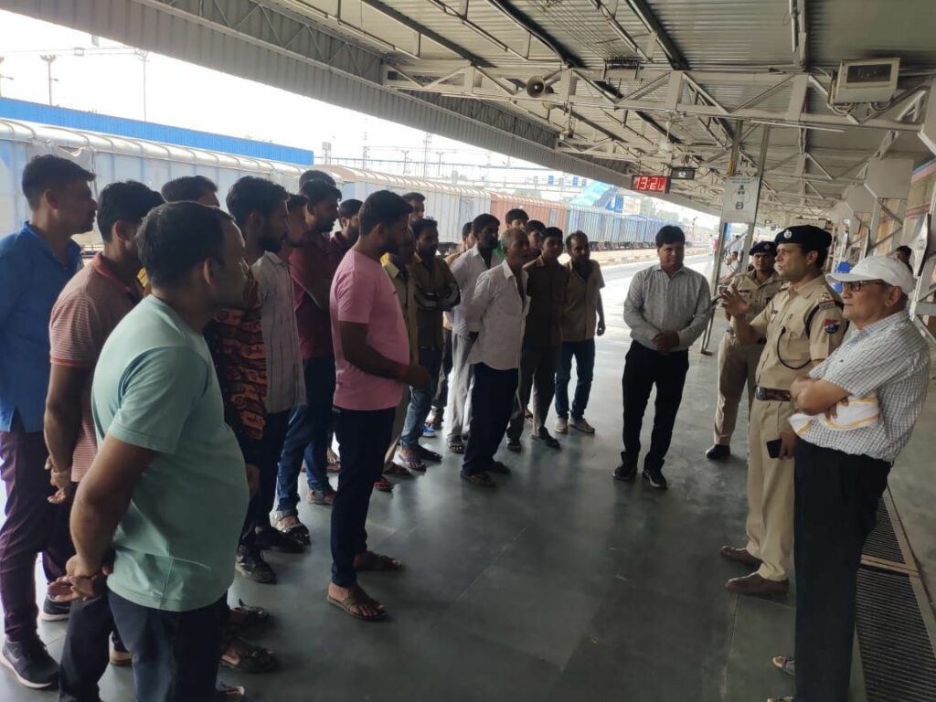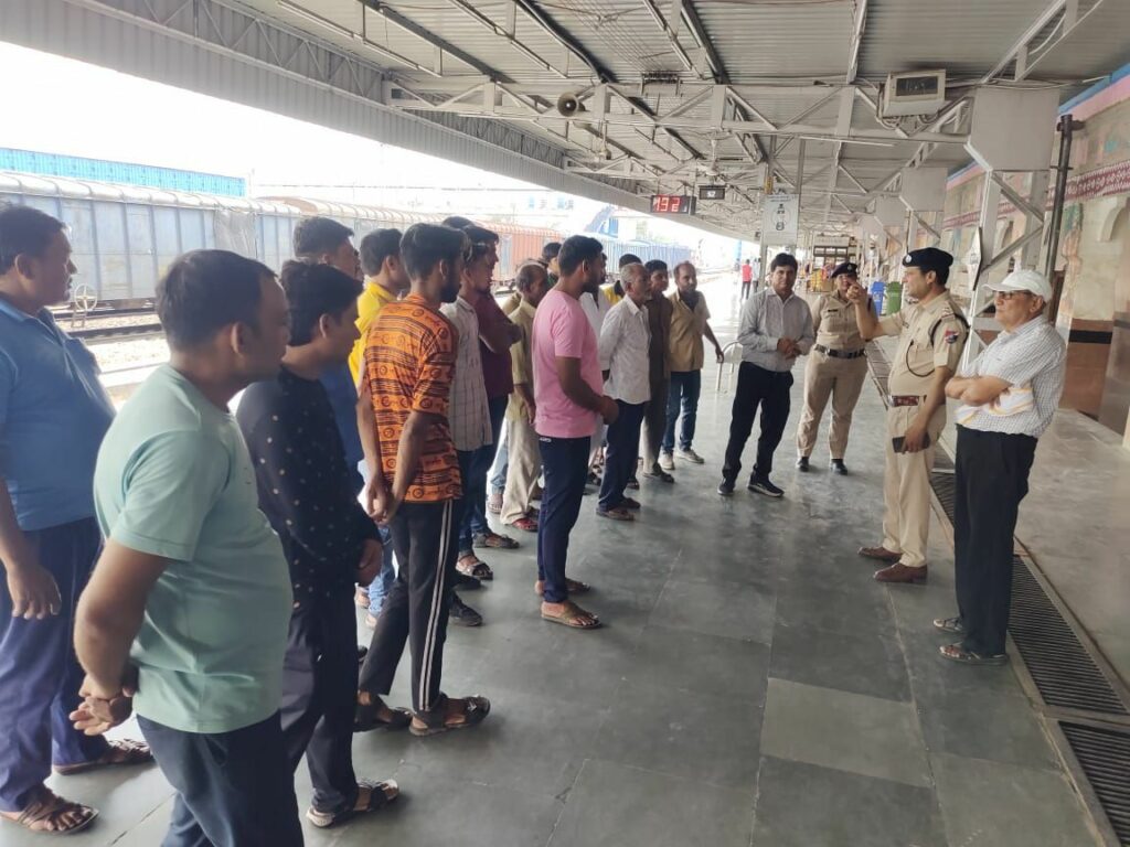 आरपीएफ के उप निरीक्षक विक्रम सिंह मय स्टाफ व रेल यात्री संघ (एकी) अध्यक्ष अशोक वासदेव, समाज सेवी शक्तिसिंह को साथ लेकर वेंडरों, यात्रियों, रेल कर्मचारियों ,जल सेवावाले सेवादारो सहित सभी को रेल लाईन क्रॉस नही करने, चलती ट्रेन पर खान पान सामान नहीं देने, पायदान पर यात्रा नही करने, जहर खुरानी से बचने , सुरक्षित रहने आदि के बारे मे समझाइश की गई। इस मौके पर आरपीएफ के ए असआई गूगन राम व महिला कांस्टेबल कुशुम मौजूद रहे।