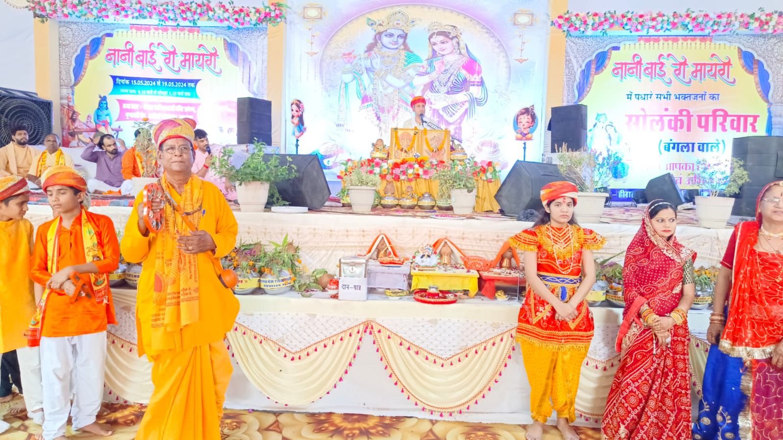 मकराना (मोहम्मद शहजाद)। शहर के गुणावती रोड़ पर स्थित बंगला वाले बालाजी मंदिर में सोलंकी परिवार की ओर से आयोजित पांच दिवसीय नानी बाई रो मायरो कथा का समापन हुआ। इस अवसर पर कथा सुनने के लिए श्रद्धालुओं की भीड़ उमड़ पड़ी
