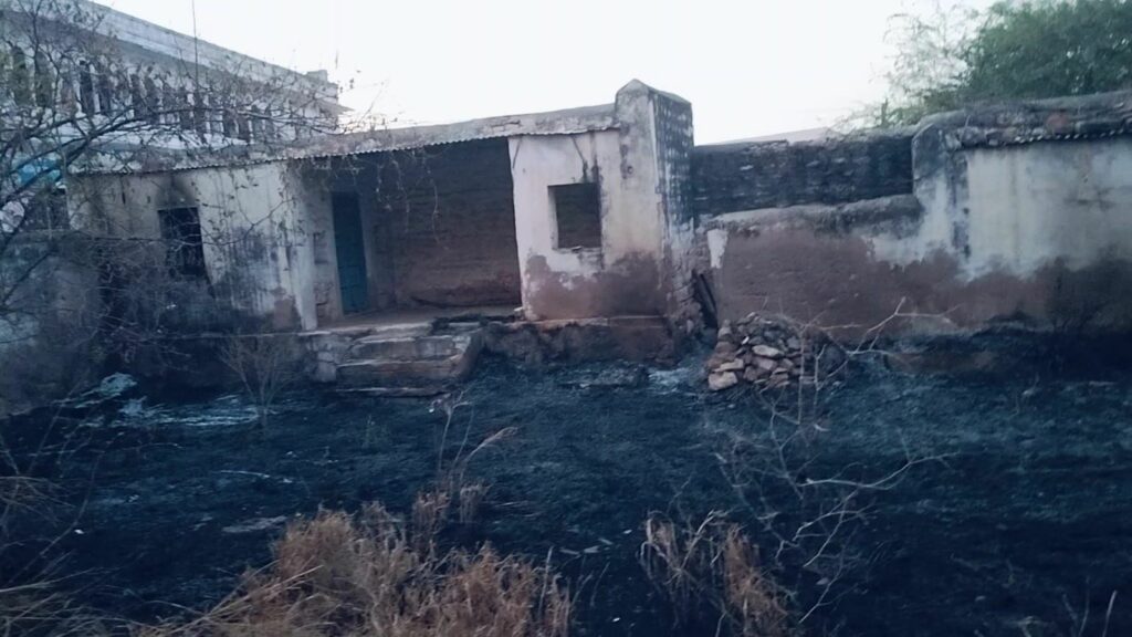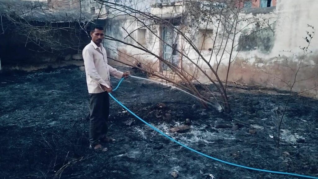 लेकिन पुराना कचरा इसमें पड़ा था जिसमें एक नजर का चश्मा का कांच भी पड़ा था, दोपहर 2 बजे तेज गर्मी से सूरज की किरणें इस कांच पर पड़ी और इस कांच की किरण से समीप ही सुखी घास ने आग पकड़ ली। प्रेमाराम सेन ने राह चलते यह नजारा देखा तो इस बाड़े की देखरेख करने वाले धर्माराम मेघवाल को फोन करके बुलाया ,तब तक आग ने विकराल रूप धारण कर लिया गनीमत यह रही की आसपास के मकानों में आग की लपटें पहुंचने से पहले ही मोहल्ले वासियों द्वारा आग पर काबू पा लिया गया वरना काफी मकानोंं में नुकसान होने का अंदेशा था, वही ग्रामीणों के लिए पूरे दिन कांच से आग लगने का विषय चर्चा का रहा।